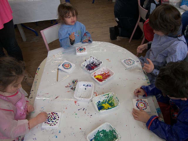 • 9éme journée: mise en couleur des carreaux puis émaillage et cuisson à 950°C dans le four de l’atelier.