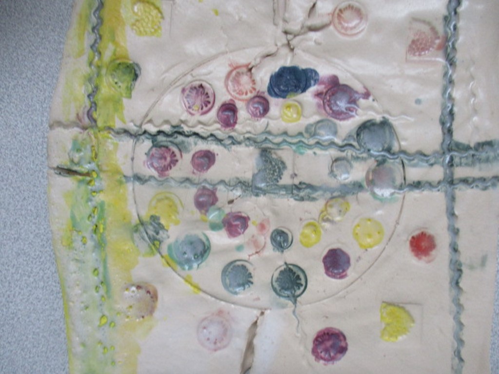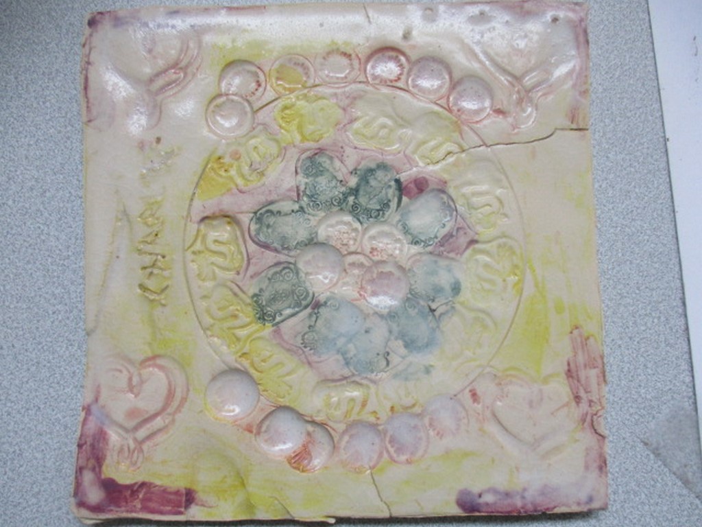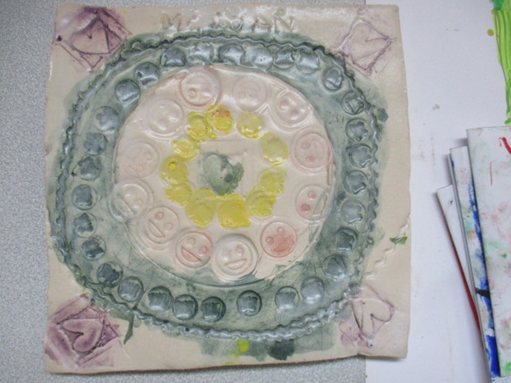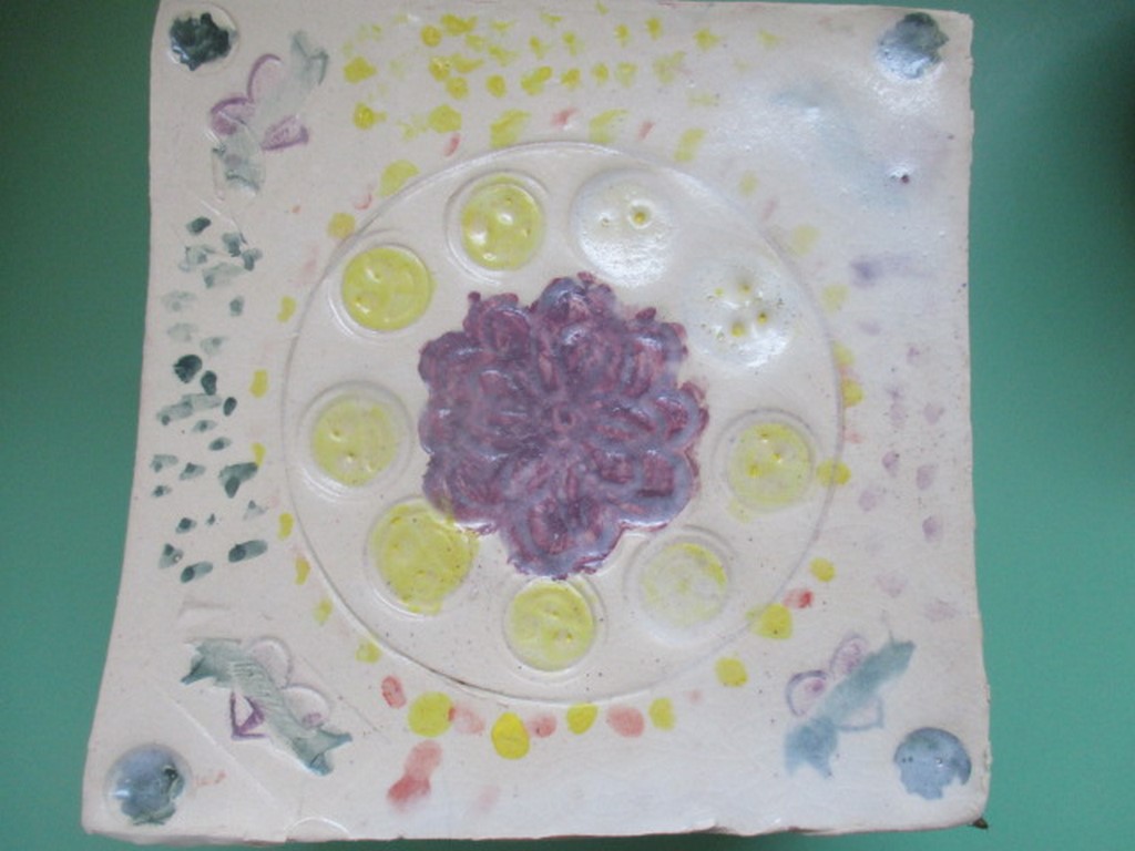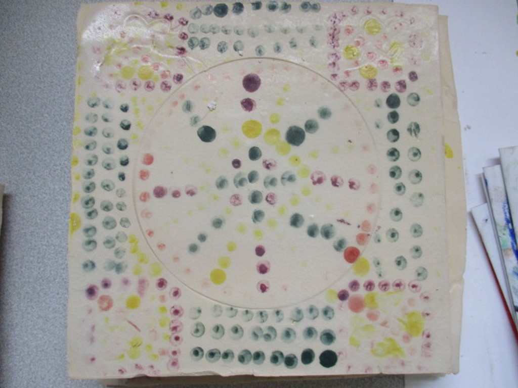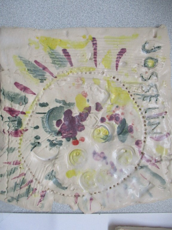 • 9éme journée: mise en couleur des carreaux puis émaillage et cuisson à 950°C dans le four de l’atelier.